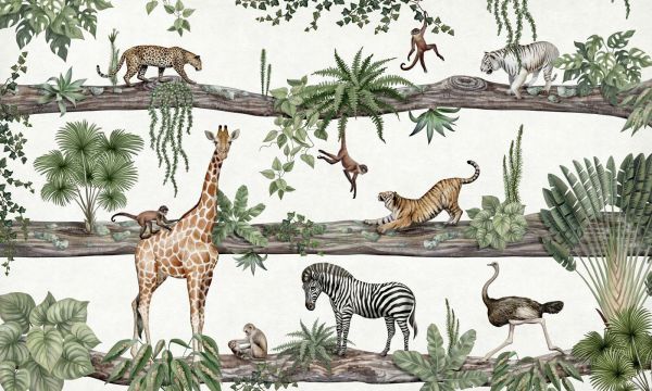 De stijl is verfijnd en illustratief, met veel aandacht voor de expressie van de dieren en de texturen van de planten. Het kleurenpalet bestaat voornamelijk uit natuurlijke tinten zoals olijfgroen, mosgroen, beige, bruin en subtiele accenten van oker en grijswit – wat het ontwerp rustgevend én dynamisch maakt.