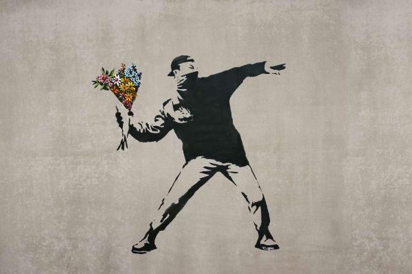 Behangpapier - Banksy - Flower thrower, soft concrete