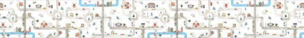 Dit ontwerp is perfect voor een kinderkamer, speelhoek of speelruimte. Het nodigt uit tot interactie, verbeelding en spel: kinderen kunnen met speelgoedauto's de wegen volgen of hun eigen verhalen verzinnen rond de verschillende locaties. Combineer het met een laag tafeltje of zachte speelmatten in neutrale kleuren, houten speelgoed en wandplankjes met kleine voertuigen of huisjes om het speelelement nog meer te versterken.
