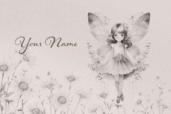 Elfje in zacht margrietenveld in verschillende materialen