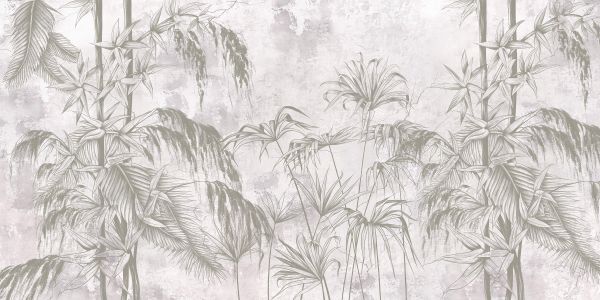 Dit jungle vibe fotobehang brengt een unieke sfeer in de kamer. De achtergrond is een beton effect.