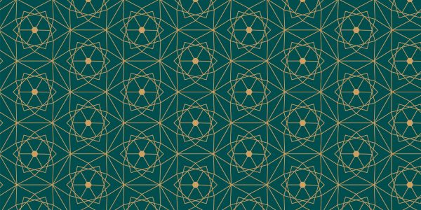 Een oriental patroon in goud-gele kleuren met een groene achtergrond. Dit patroon blijft zich herhalen in groottes en meervoud. Een echte eye-catcher waar je naar blijft kijken!