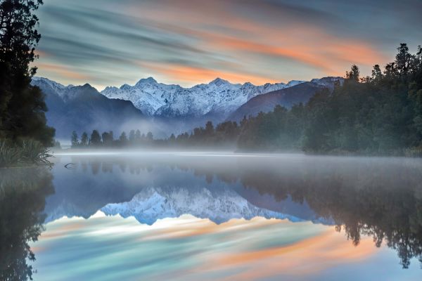 Pastel Hues fotobehang uit onze 1x collectie. In het water is de reflectie van het landschap te zien.