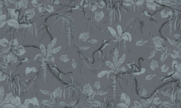 Fotobehang - Playful Monkeys - Monochrome - Blue
