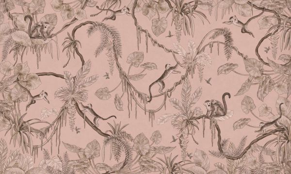Fotobehang - Playful Monkeys - Monochrome - Pink