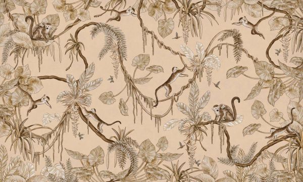 Fotobehang - Playful Monkeys - Vintage - Beige