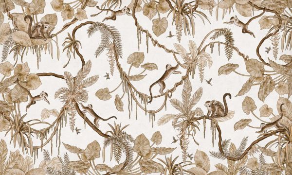 Fotobehang - Playful Monkeys - Vintage - White