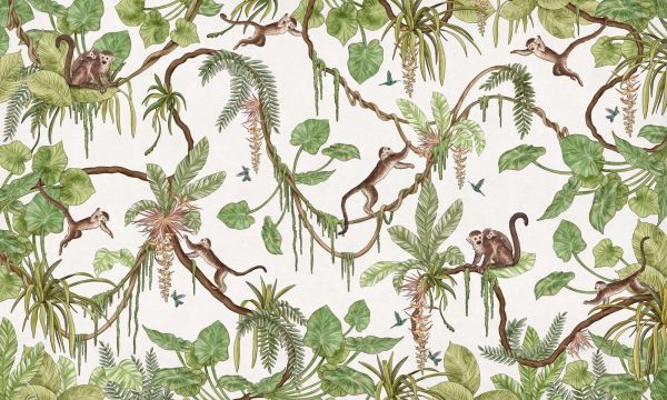 Zeer geschikt voor een tropisch kinderkamerinterieur, botanisch speelconcept of een fris scandinavisch interieur met een natuurlijk thema. Combineer met lichte houten meubels, textiel in wit, zand of lichtgroen en natuurlijke accessoires van rotan of bamboe om het junglegevoel door te trekken.