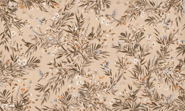 Fotobehang - Playful Robins - Vintage - Beige